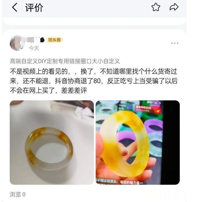 某短视频平台上,"六六手镯源头"的主播正卖力吆喝,手里那只绿油油的镯子,在灯光下格外诱人。"缅甸翡翠高货,新号福利价!"郭先生心动了,980块,不算太贵,想着给媳妇买个七夕礼物,手指一点,下单。