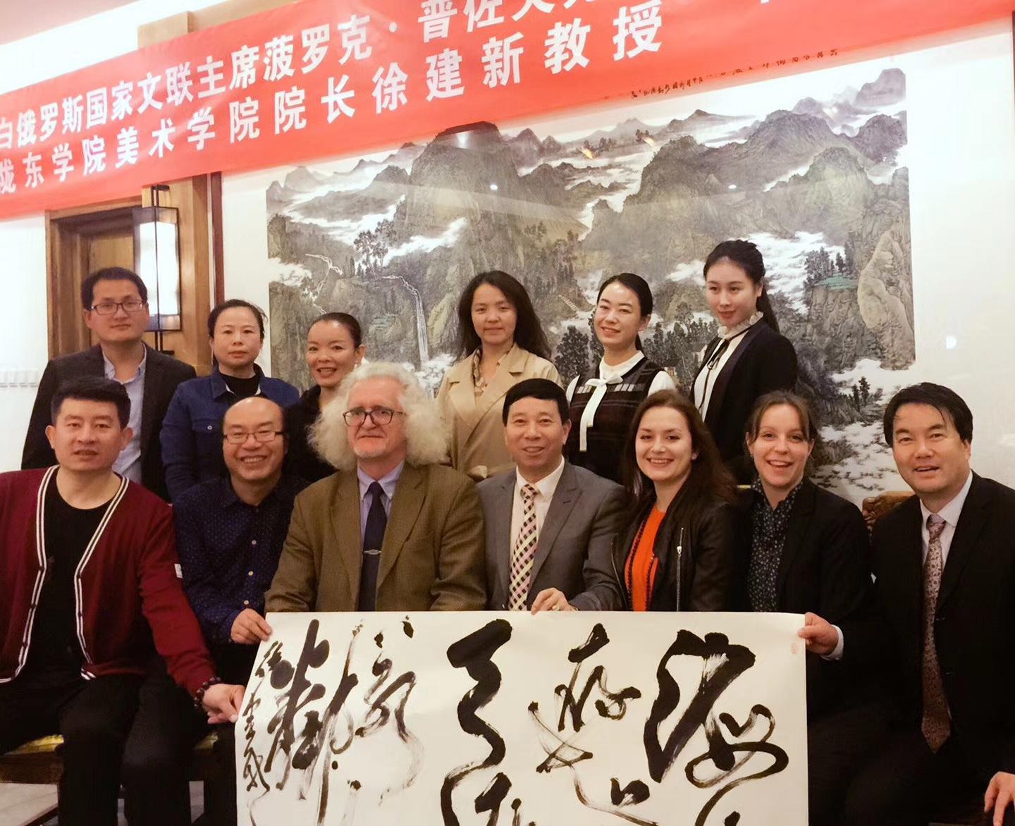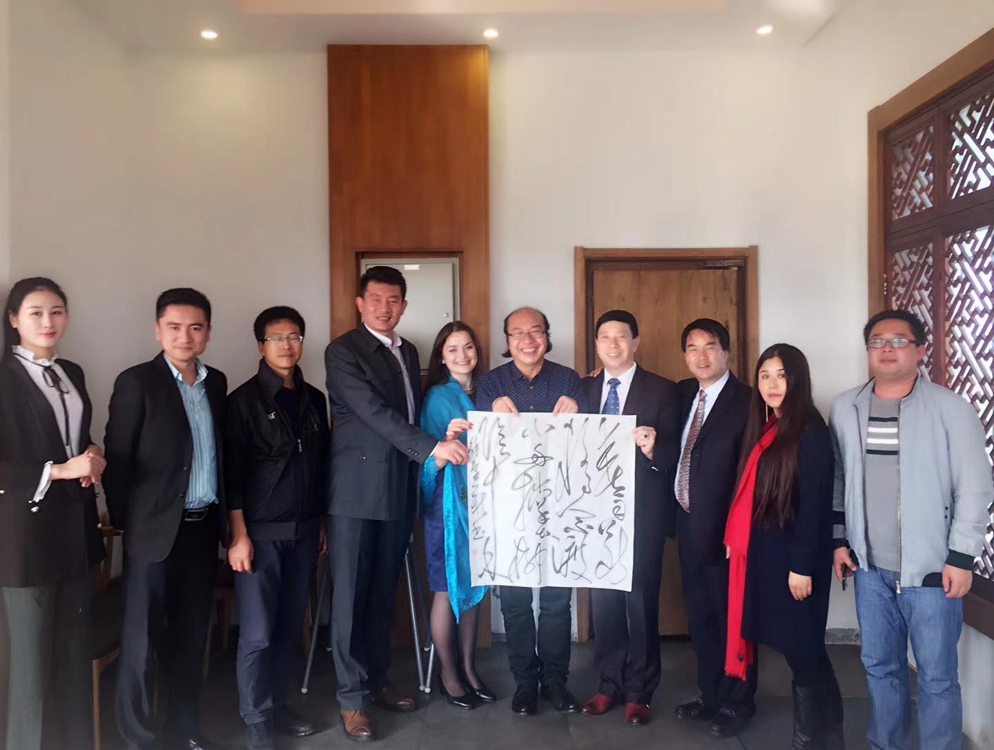 10月19日,刘瀚锴特邀!国务院行政司原工会主席白雁、国务院原副总理吴桂贤办公室主任温珍荣、著名书法家林继福、中国摄影家协会副主席张桐胜、著名摄影家、江苏省原大丰市委常委杨国美、著名书法家刘俊、陈书平和天津市美术中学校长冯继红等各界人士,与白俄罗斯国家美术馆馆长、白俄罗斯文联主席普佐夫,副主席国沙,秘书玛莎在京进行文化交流!