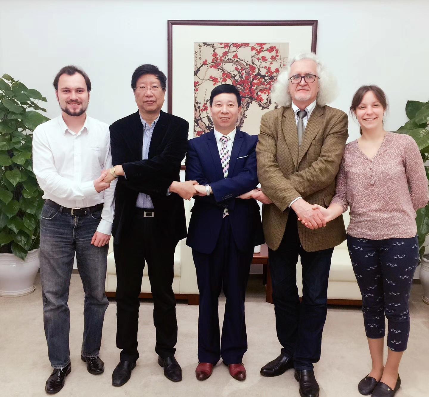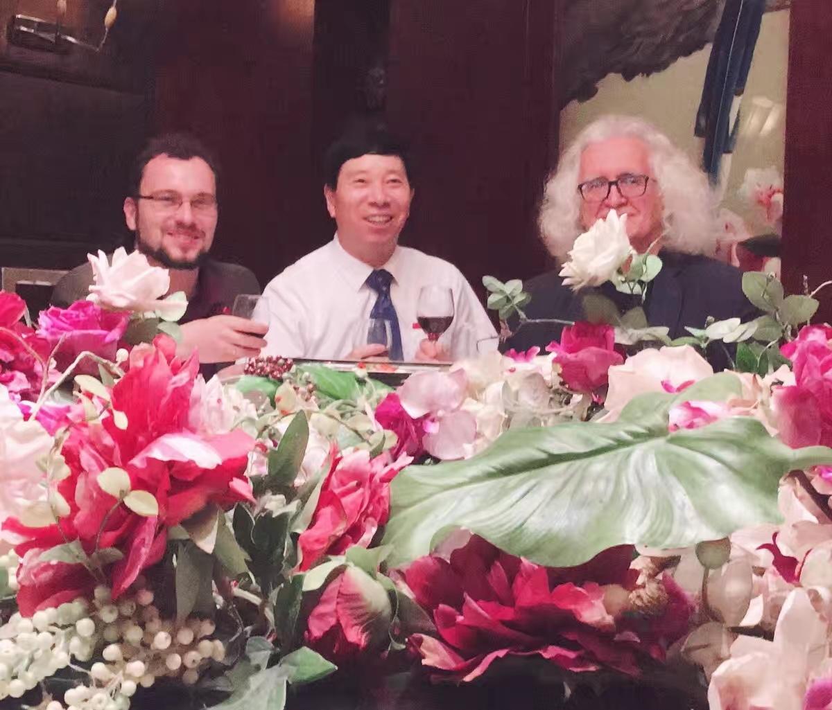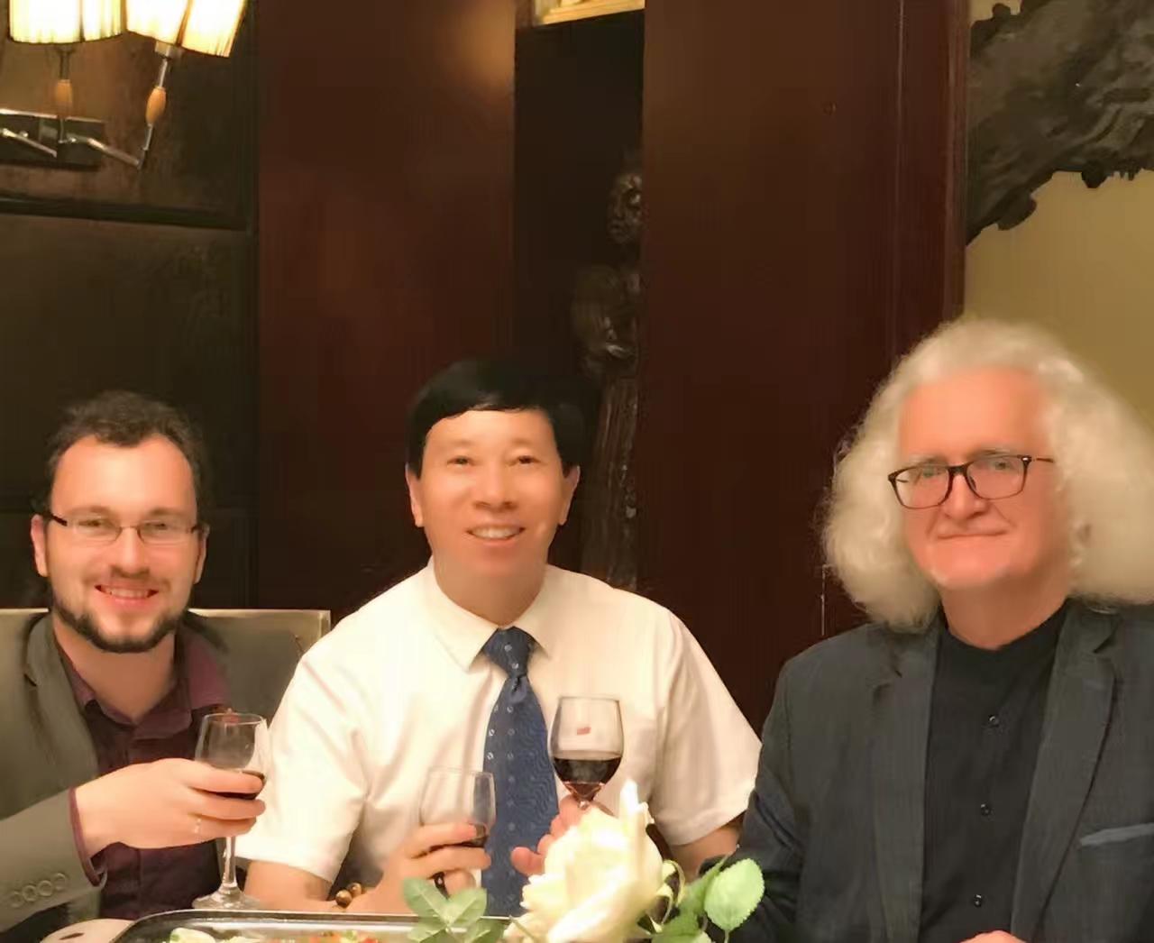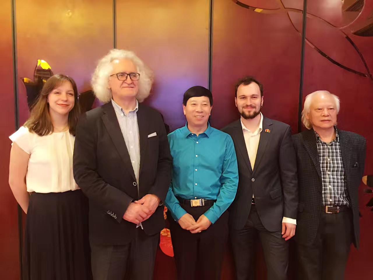 10月25日,联合国教科文组织的代表、白俄罗斯国家文联主席普佐夫,文联中国首席代表刘瀚锴,文联秘书玛莎,中国驻外大使馆原处长汪建国夫妇及记者紫萱,作客北京地安门并与负责人张拥军、《人民日报》海外版陈厚学、著名油画家徐建新教授亲切交流!同时,普佐夫主席欣然为刘瀚锴所著《人在旅途》题词!
