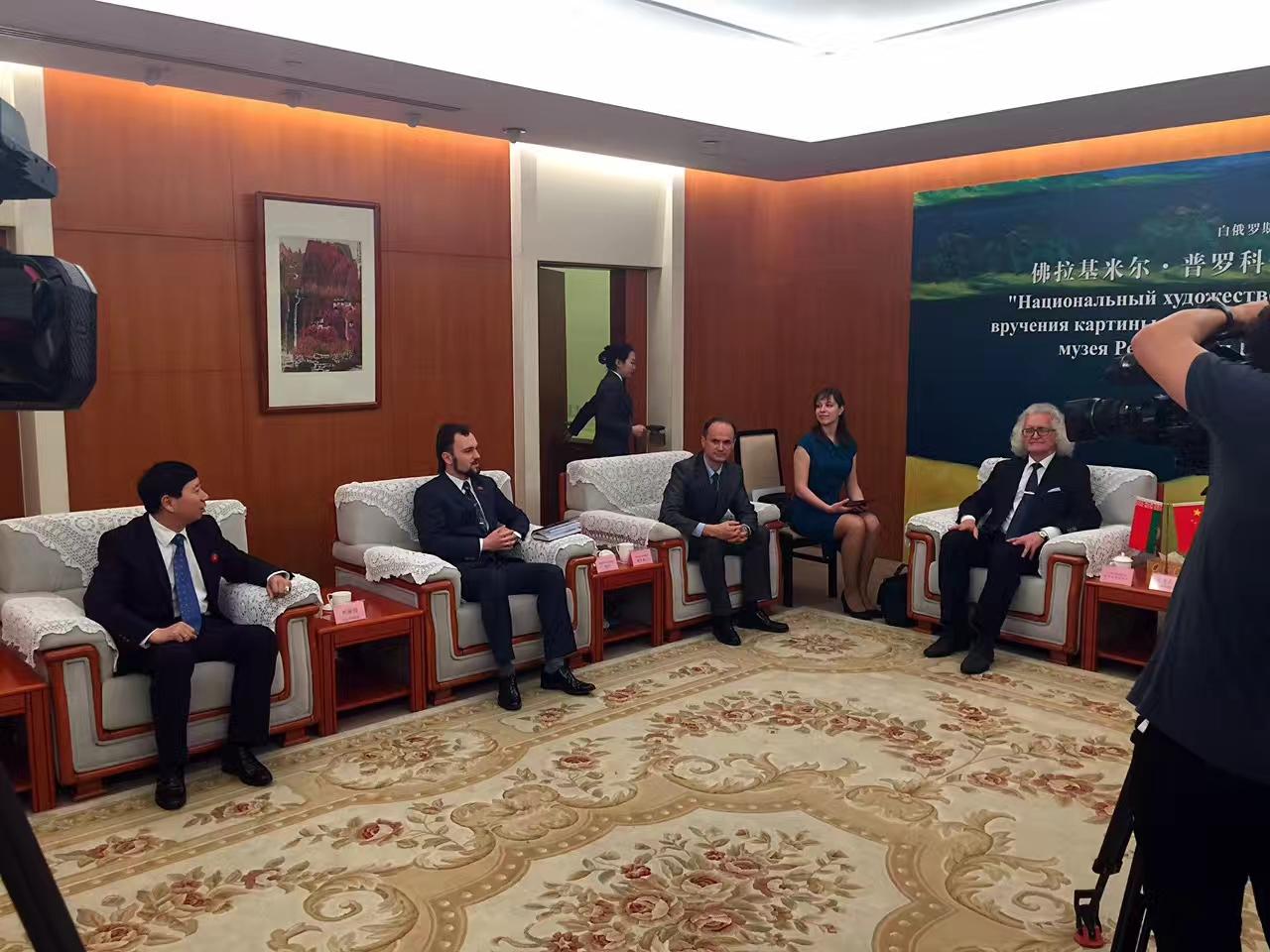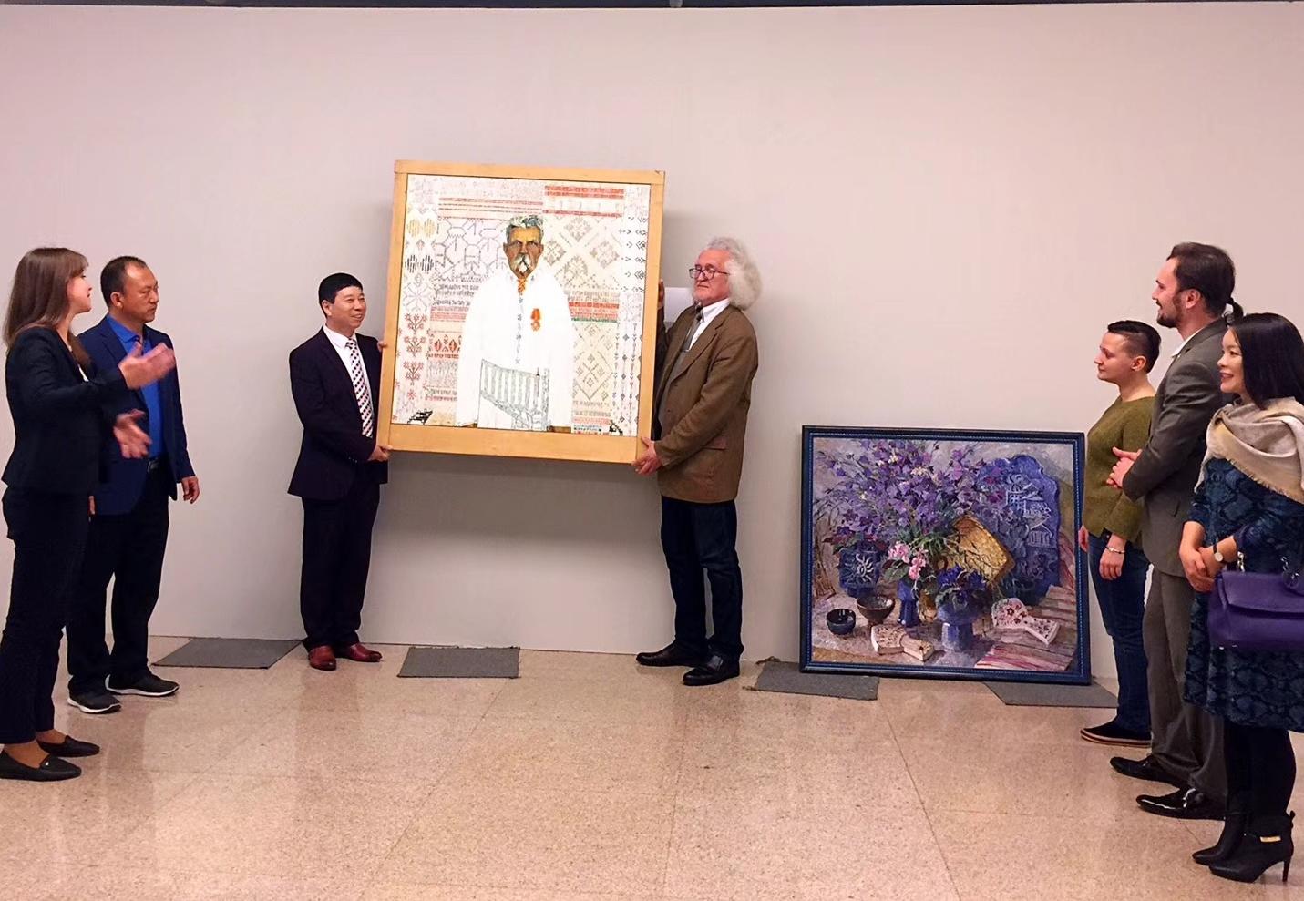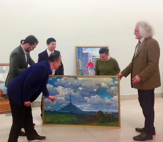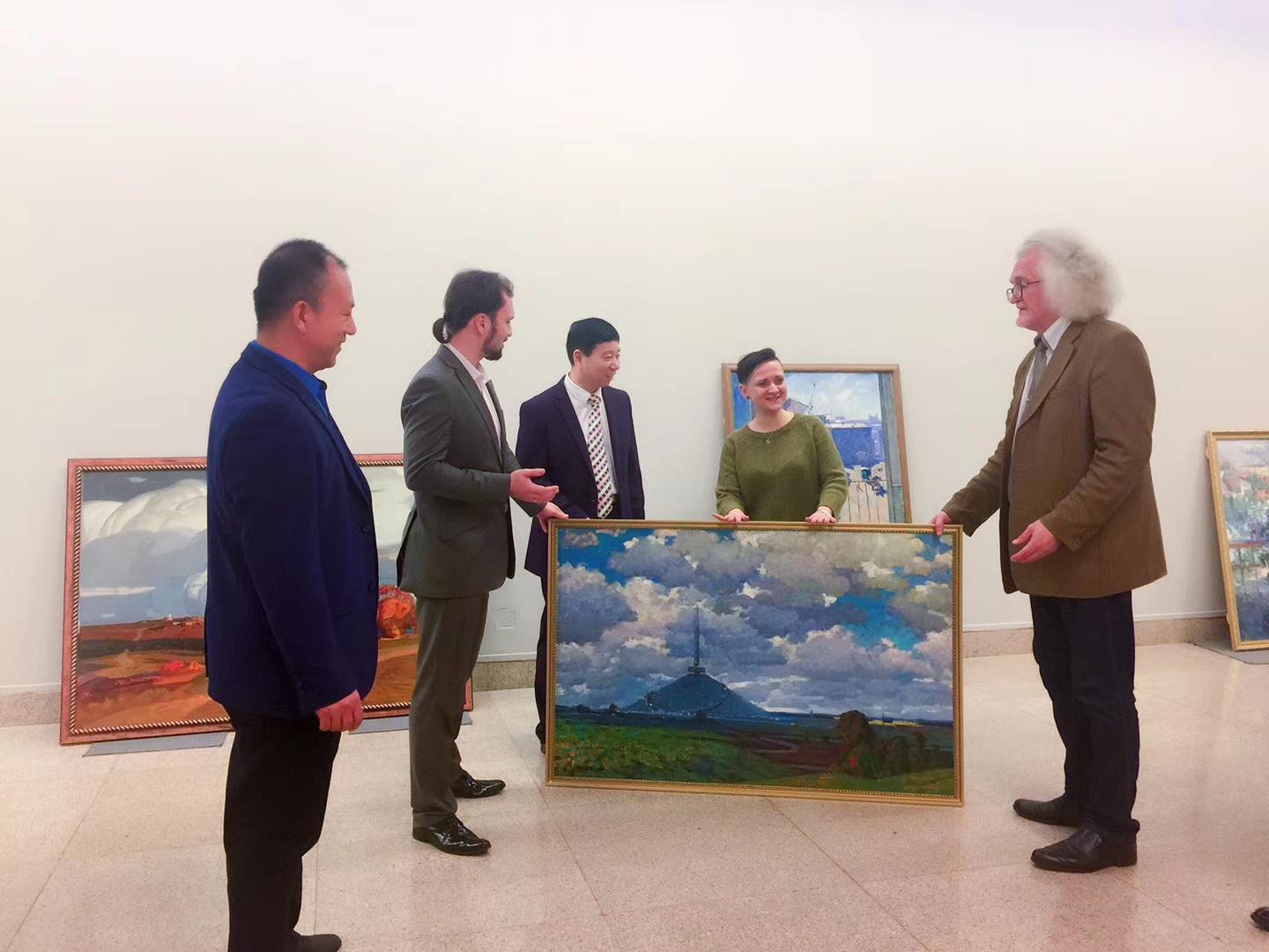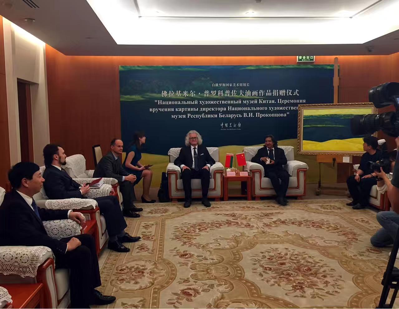 4月26日,白俄罗斯国家文联主席、国家美术馆馆长普罗克普佐夫,向中国美术馆捐赠《父母的故土》油画作品。中国美术馆馆长吴为山接受作品捐赠!白俄罗斯驻华大使馆参赞谢尔盖,白俄罗斯国家文联副主席国沙、文联中国首席代表刘瀚锴、文联秘书玛莎出席活动!