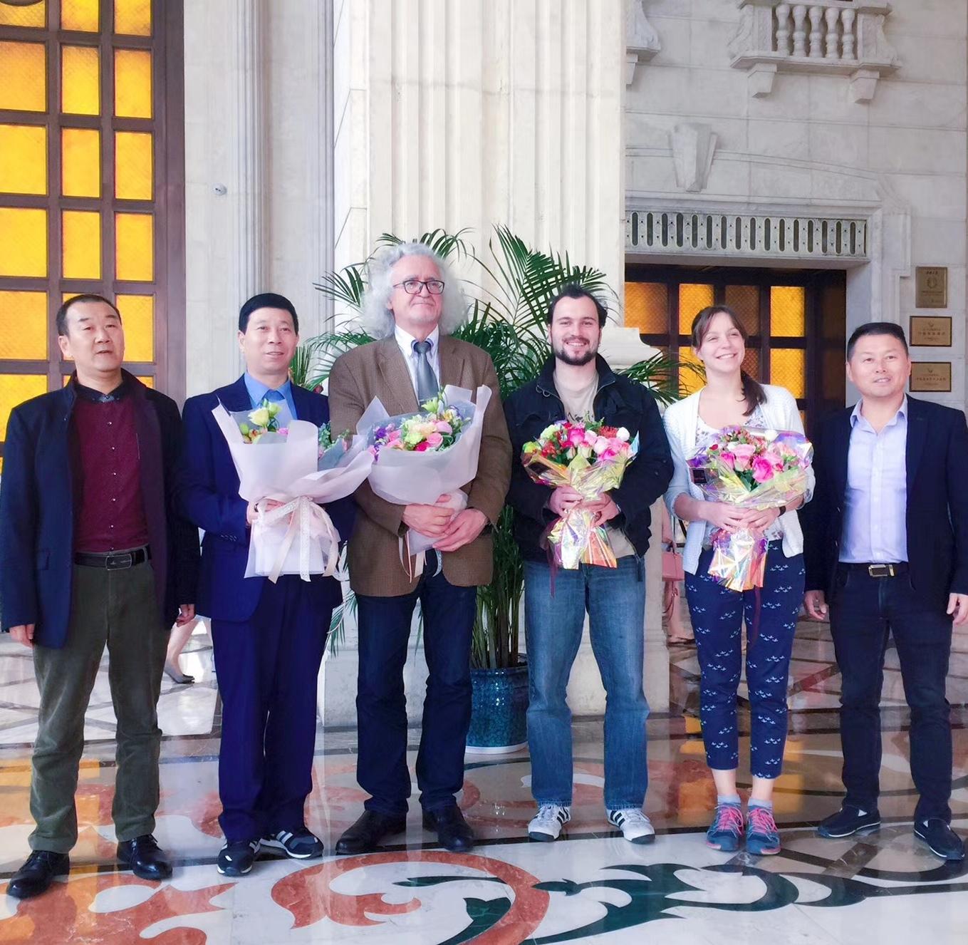 5月29日,白俄罗斯国家文联副主席国沙、文联中国首席代表刘瀚锴、欧洲著名男高音歌唱家弗拉基米尔、白俄罗斯国家电视台著名节目主持人玛丽娜、优秀俄语翻译王焕焕等人应邀赴浙江省台州市进行文化艺术交流和友好访问!受到了金东福院长等人的热烈欢迎和热情接待。