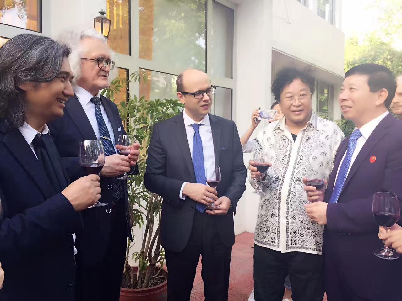 4月27日,刘瀚锴特邀张俊以、敖特、孙潇、段红、马晓薇等人,赴白俄罗斯驻华使馆,出席白中文化艺术交流活动!期间,大家与中国美术家协会副主席、中国美术馆馆长吴为山,白俄罗斯驻华大使鲁德,联合国教科文组织代表、白俄罗斯国家文联主席普佐夫在一起亲切交谈!