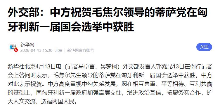 北京的反应同样干脆,外交部在几小时内送上祝贺,表态“高度重视中匈关系发展”,愿意在“相互尊重、平等互利基础上加强高层交往”。