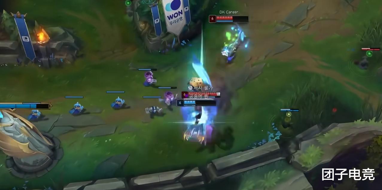 不过这个时候许哥同意了,前面我们说过了,DK这个阵容是一个打防守反击的阵容,不管对面谁开过来,沙皇有推、妮蔻ER都是反手,包括杰斯的锤。