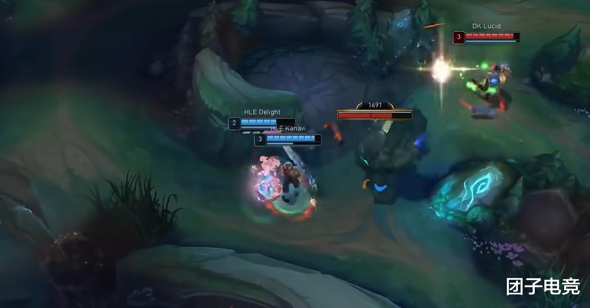反观HLE则是很稳,就是正常的反手阵容,只要梦魇敢进来,反手就能将其秒掉,虽说许哥的球女TP下路带了一波好的节奏,但是整体实力差的太多了,加之梦魇想要入野区资源置换,HLE的上路和中路都会过来帮Kanavi守野区。