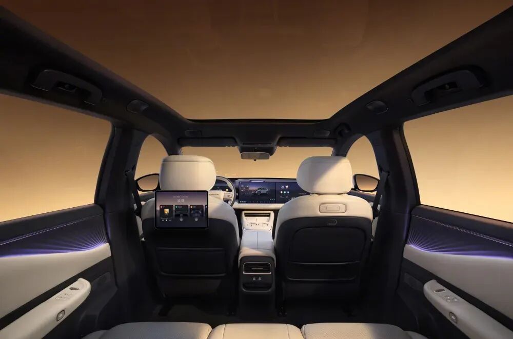 内饰方面,新车采用环抱式座舱设计,车内通过动感的氛围灯进行装点,车内采用双色双辐式多功能方向盘,两块大尺寸的悬浮式双连屏也是向现在国产车型看齐。该车还有手机无线充电、HUD抬头显示、凝脂皮座椅和蝶形头枕等配置。