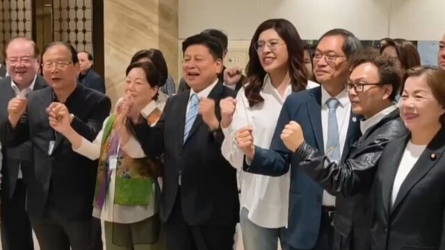 在郑丽文讲话的过程中,接机代表和其他工作人员始终面带微笑,不时爆发热烈掌声和欢呼声,气氛相当热烈。