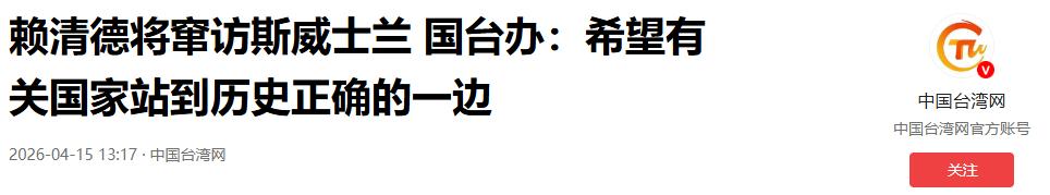 就在两岸交流出现明显暖意、岛内舆论普遍支持两岸合作的时候,赖清德突然宣布要在 4 月 22 日到 27 日访问斯威士兰,名义上是为当地国王祝寿。这个时间点选得非常刻意,正好在郑丽文访陆成果和大陆惠台措施引发热议的时候,明显是想转移岛内舆论焦点,对冲两岸交流带来的正面效应。