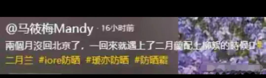 马筱梅抵达北京后,立刻投入工作模式。刚生完孩子不到两个月,她身穿白纱裙在二月兰花海中为某防晒品牌带货,状态好得离谱,皮肤白皙、身材恢复神速,完全不像刚生完孩子的样子。