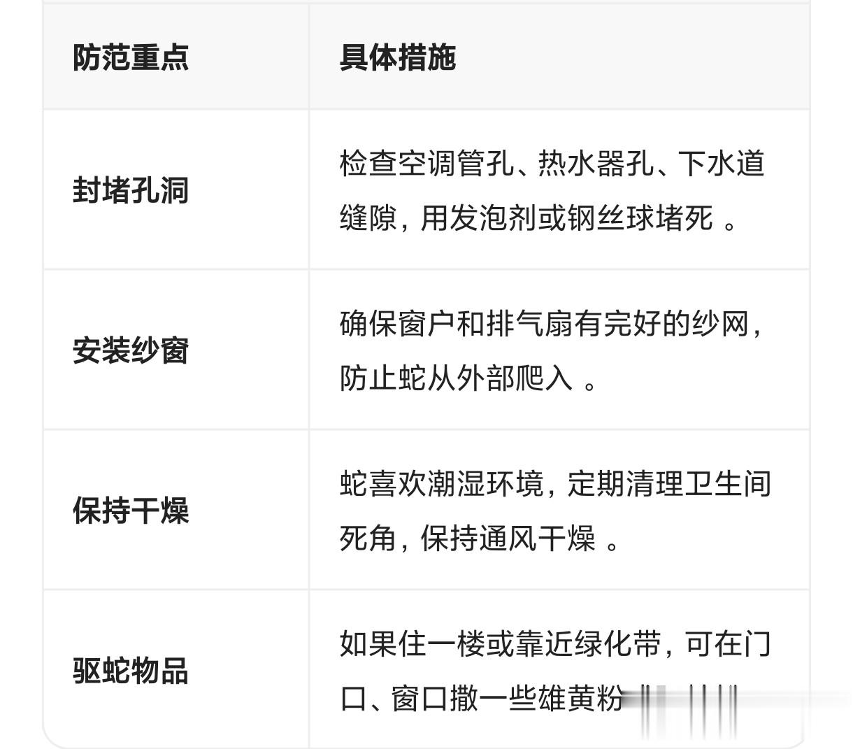 天气转暖,蛇类活动变得频繁。浴室、厨房等潮湿、阴暗的地方,或者是通过下水道、空调孔、排气管,都是蛇类进入室内的常见路径。