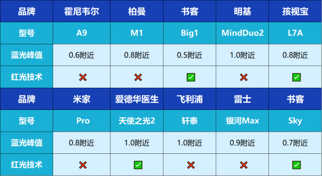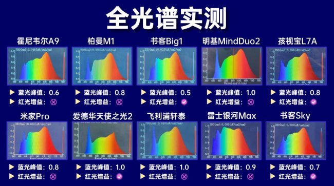 SS级|光谱表现良好:孩视宝L7A、柏曼M1、米家Pro、雷士银河Max