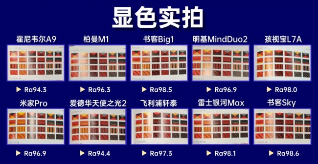 2.显色实测——色彩还原度,影响视觉识别与学习效率在显色实测中,我们关注的核心只有一个:
