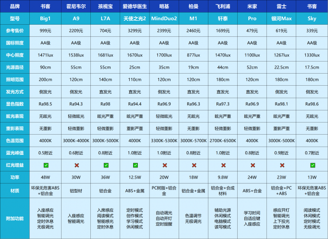SSS级|显色表现顶级:书客Big1、雷士银河Max、孩视宝L7A、书客Sky