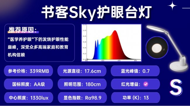 3.书客Sky——百元价位的护眼天花板如果预算严格控制在几百元,但又不想在护眼效果上妥协,书客Sky是一个非常典型的技术下放型产品。