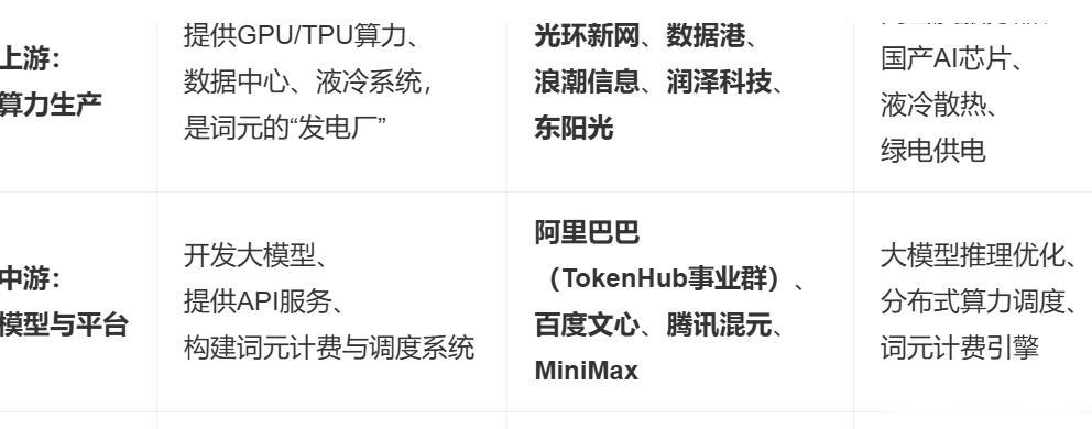 词元经济上中下游产业链结构