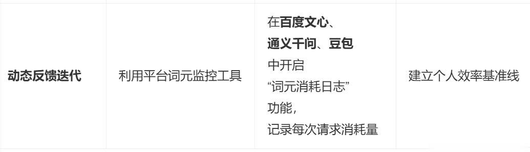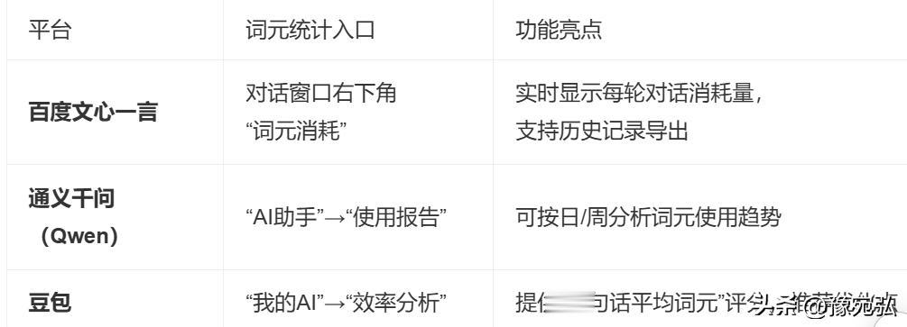 工具推荐:使用豆包、Claude、通义千问等平台的“词元消耗统计”功能,实时监控效率。