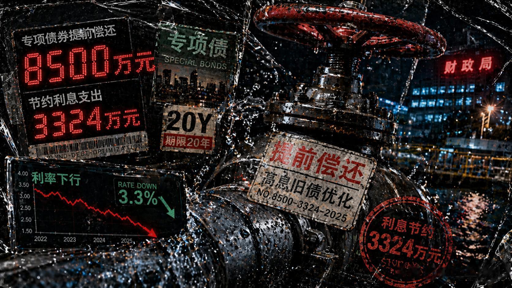 期限长达20年,利率3.3%,在两三年前的金融环境里,这是一个非常标准的财务安排。基础设施建设本身投资大、回本慢,拉长还款周期可以大幅度减轻政府每年的还款压力。但如果真的按部就班地把这笔钱借满20年,每年按3.3%付利息,20年累积下来的利息总额是非常惊人的,这也是为什么这次能够一口气省下三千多万利息的原因。