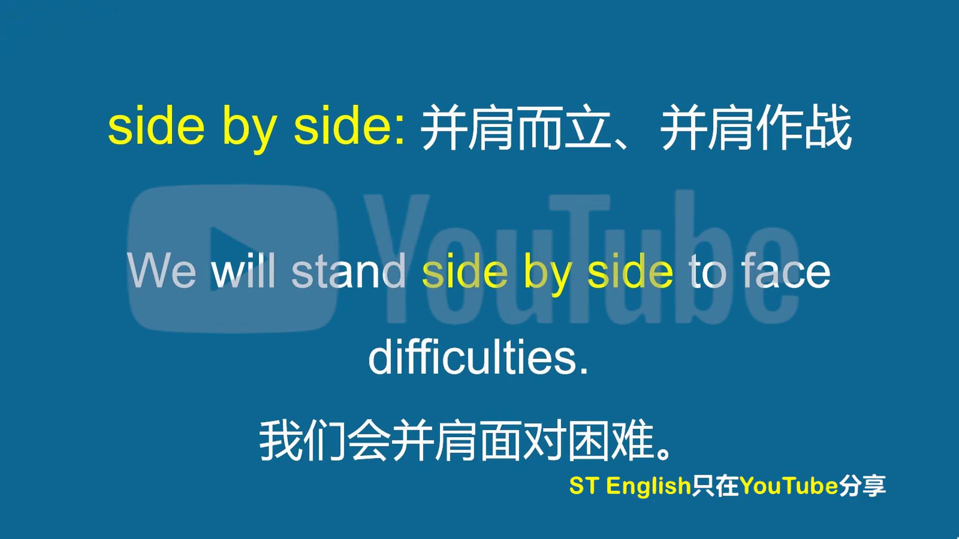·第一个是side by side by side 并肩而立、并肩作战。