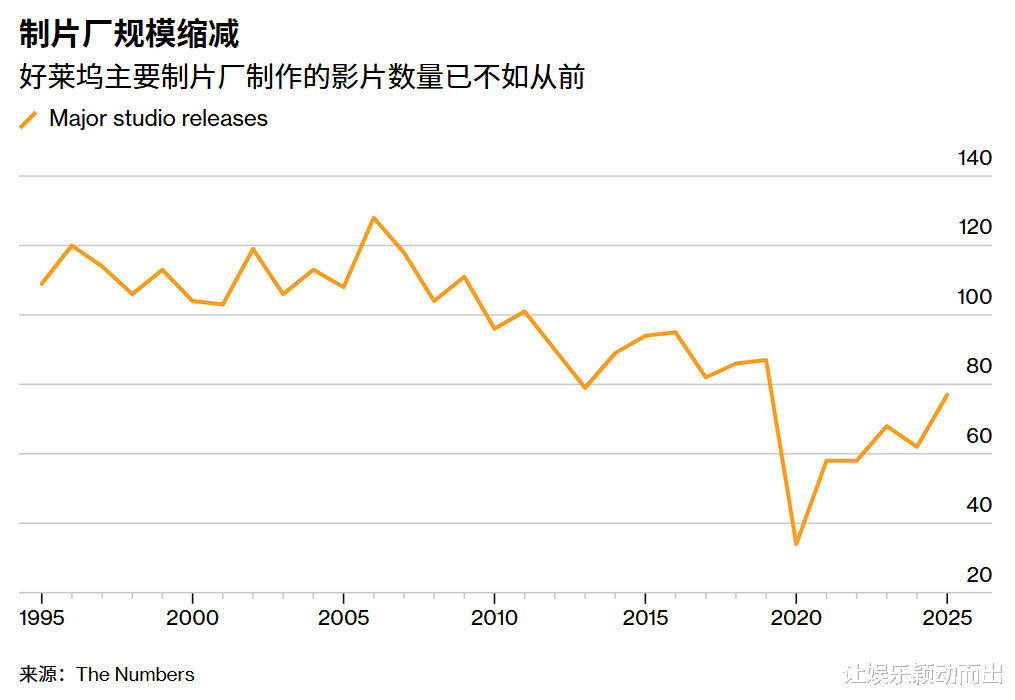 这反映了头部制片厂的萎缩。自21世纪初以来,好莱坞六大主要制片厂发行的电影数量下降了约35%。曾经的主要制片厂二十世纪福克斯,现在只是迪士尼的一个部门,每年仅制作屈指可数的几部电影。曾经每年发行约15部电影的派拉蒙,在近十年的时间里都没有超过10部。环球影业和索尼影业是仅有的维持产能或增产的制片厂。