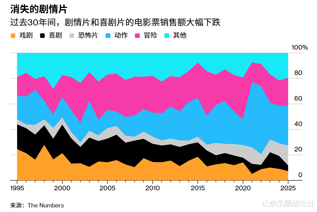 如今制片厂青睐的类型是动作片、冒险片、恐怖片,痴迷于借助现有IP拍稳赚不赔的续集,或者拍低成本的类型片,从电影票房分配来看,剧情片和喜剧片降幅巨大。