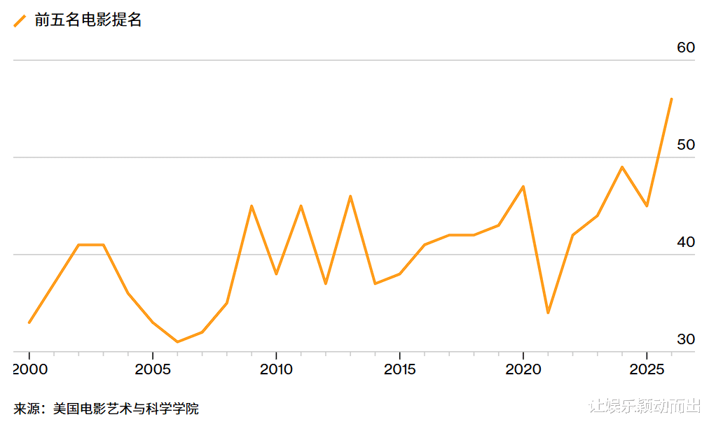 然而,根据彭博社的数据,争夺奥斯卡奖的电影库正变得越来越干瘪,直接导致本届奥斯卡成为了本世纪以来(甚至有可能是其近百年历史上)提名最为集中的一届颁奖礼。