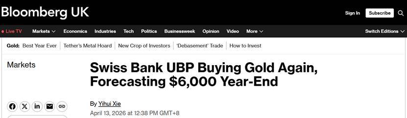这家瑞士私人银行已逐步将黄金重新纳入全权委托客户投资组合。此前,该行已将黄金敞口从约10%削减至3%。