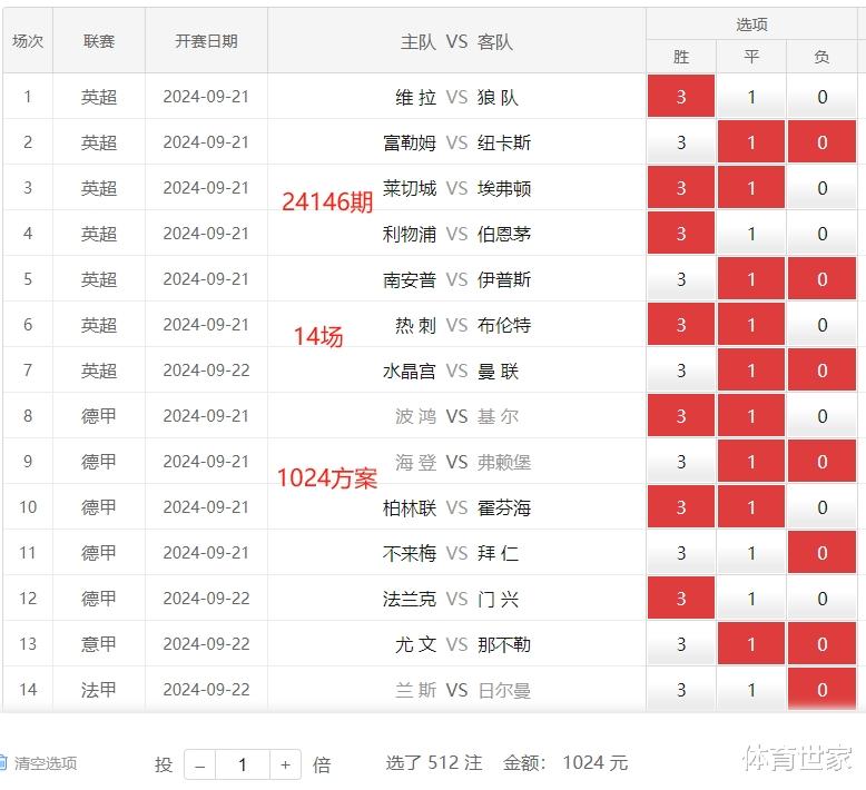 24145期胜负彩14场 1024方案: