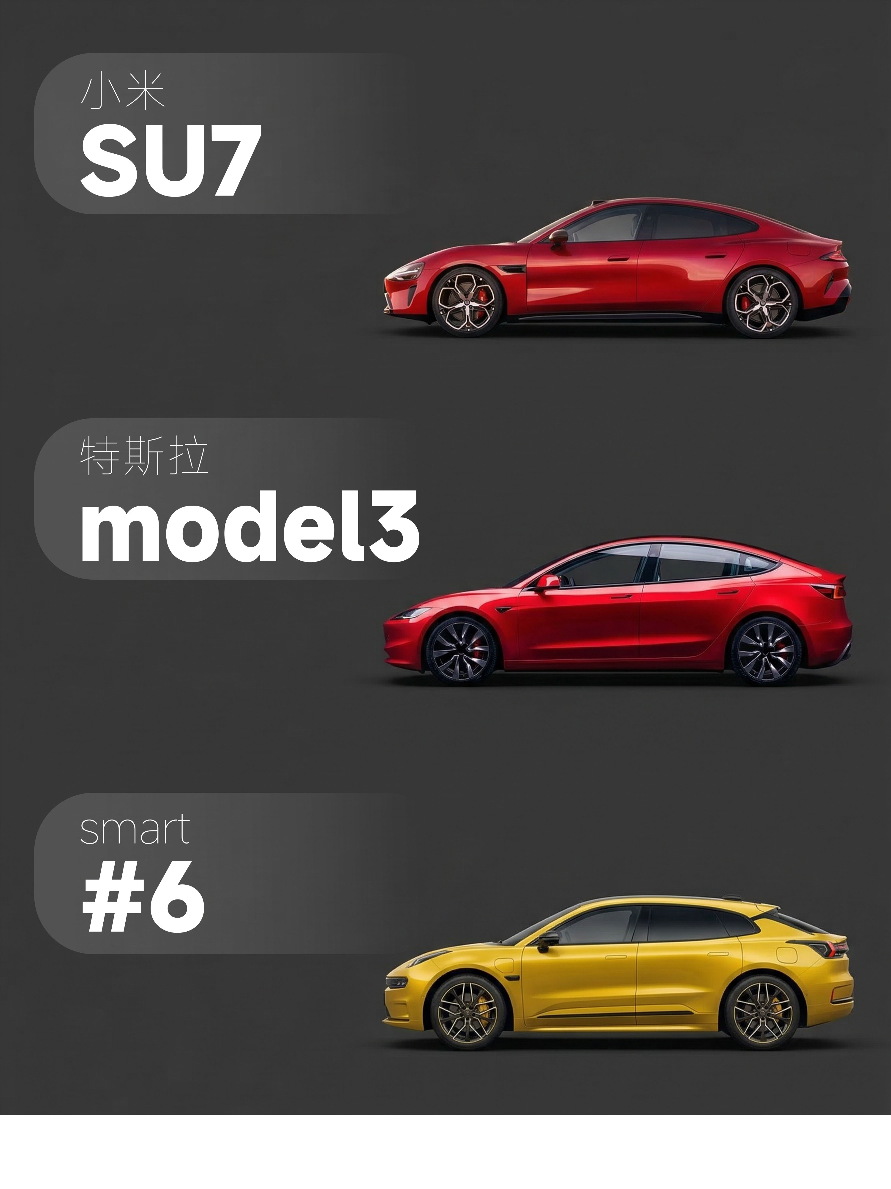 小米SU7拥有接近豪华跑车的视觉效果,特斯拉Model3设计精致耐看,smart精灵6号则在原创设计上展现出独特优势。鲨鱼仿生造型搭配功能性真风道与智能尾翼,在同质化设计中形成鲜明差异。在颜值与原创设计之间,你更倾向于哪一款?A.小米SU7 B.特斯拉Model3 C.smart精灵6号