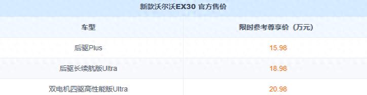 此次新款沃尔沃EX30以15.98万起的限时价格、三款丰富配置、全系高配与可靠安全,打破豪华纯电SUV的价格壁垒,为年轻家庭与都市用户提供高性价比之选,成为同级市场中极具竞争力的车型。