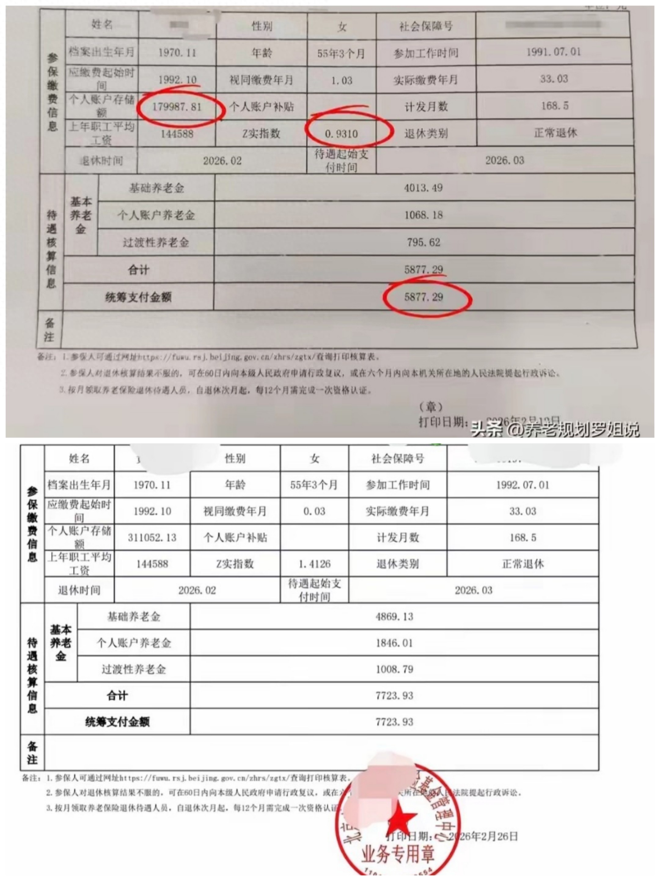 两位友友同一年退休,使用的计发基数一样12049。北京视同缴费指数统一规定为1,过度系数是1%。我们分别来算算这两位友友过渡性养老金。