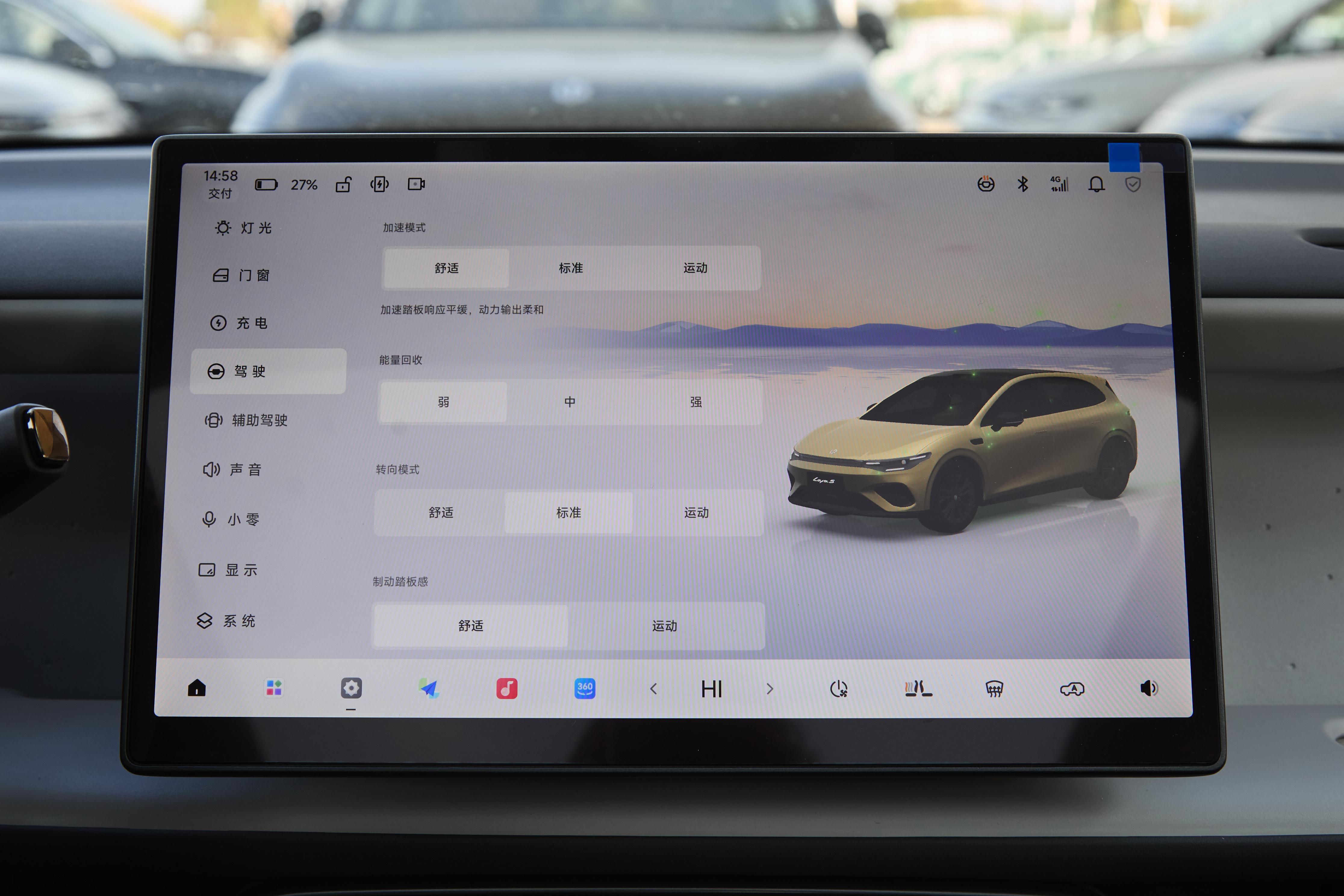 高功率版搭载七合一高性能油冷电驱系统,最大功率160千瓦,官方数据显示零百加速时间可达6.4秒。这个动力水平在城市道路超车、高架桥并线时算是够用,甚至能提供一些驾驶乐趣。车辆还提供了一种特殊的起步模式,切换到相应档位后,通过控制刹车和电门的配合,能获得更快的起步加速度,适合在封闭场地或安全路段体验。