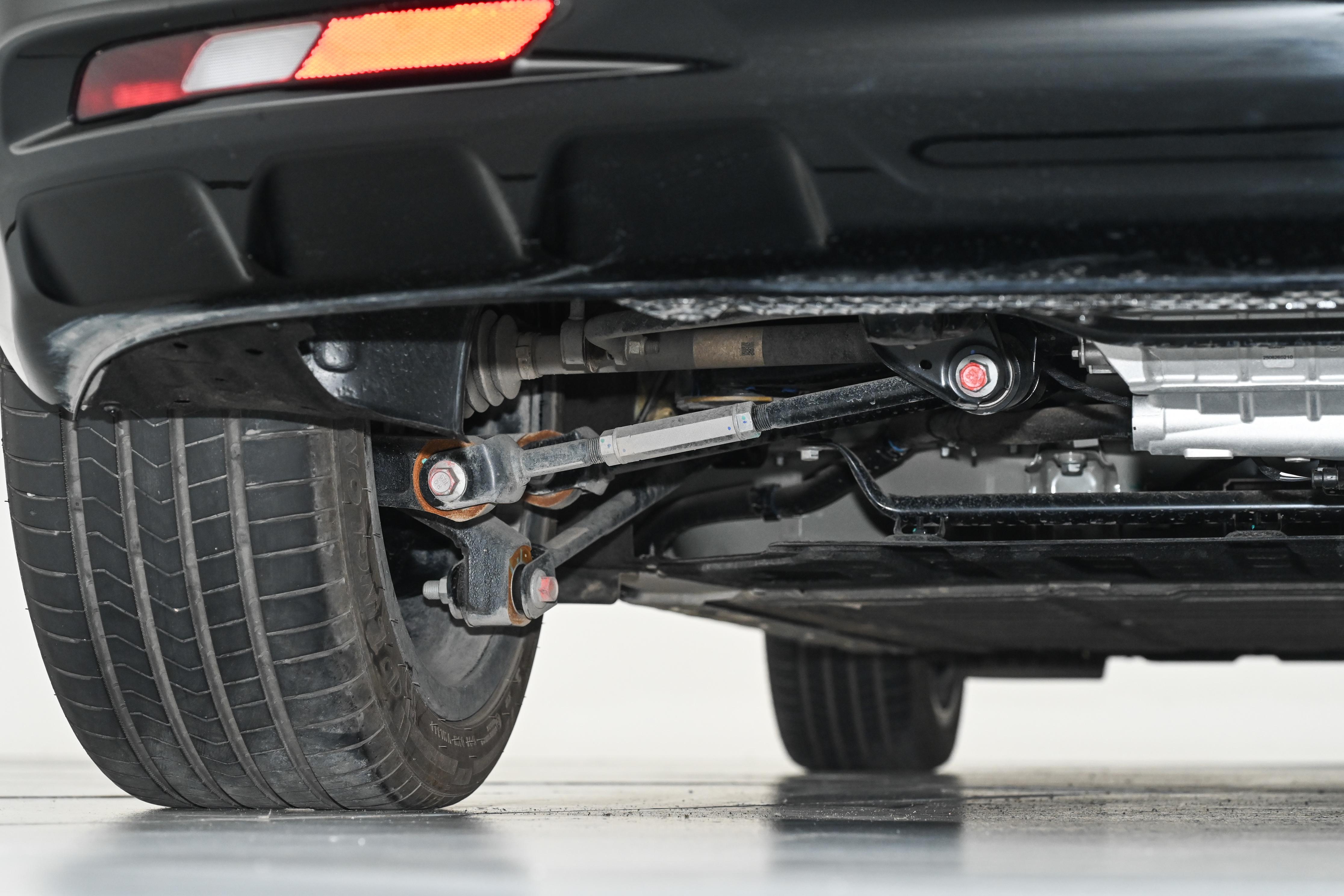 车辆前后都配备了防倾杆。防倾杆的主要作用是在车辆过弯时抑制车身侧倾。在匝道以较快速度转弯,或者在周末去山路驾驶时,有了防倾杆的支撑,车身不会像开船一样大幅度晃动,驾驶者对车辆的掌控感会强一些。数据层面,这款车做到了50:50的前后轴荷比,这个比例通常被认为是车辆动态平衡的理想状态,能让车辆在加速、制动和转向时,四个车轮的负载分配更加均匀,从而提升操控的稳定性。