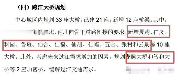 据规划,南宁未来将新增15座大桥,具体名单公布了12座,还有3座未公示。分别是灵湾、仁义、科园、鲁班、仙合、仁福、仙葫、仁幅、五合、张村、云景、龙腾、智和大桥。