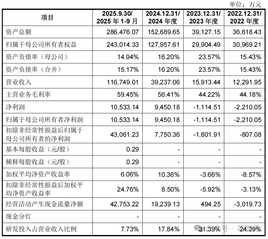 业绩方面,宇树科技2022年、2023年、2024年、2025年1-9月营收分别为1.23亿、1.59亿、3.92亿元、11.67亿元;净利分别为-2210万、-1115万、9450万元、1.05亿元;扣非后净利分别为-807万、-1802万、7750万元、4.31亿元。