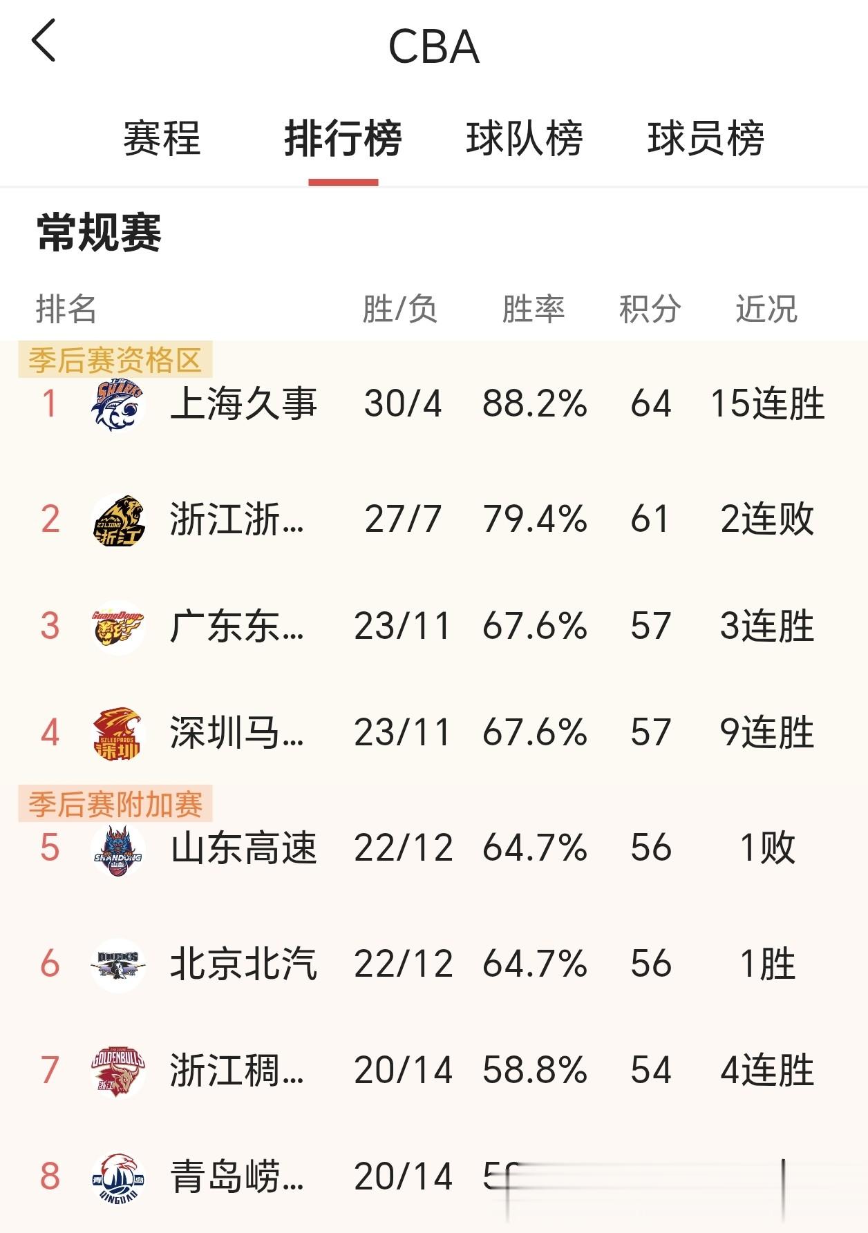前四告急:魔鬼赛程压顶惨败之后,山东男篮的战绩变为22胜12负,从第四跌至第五。