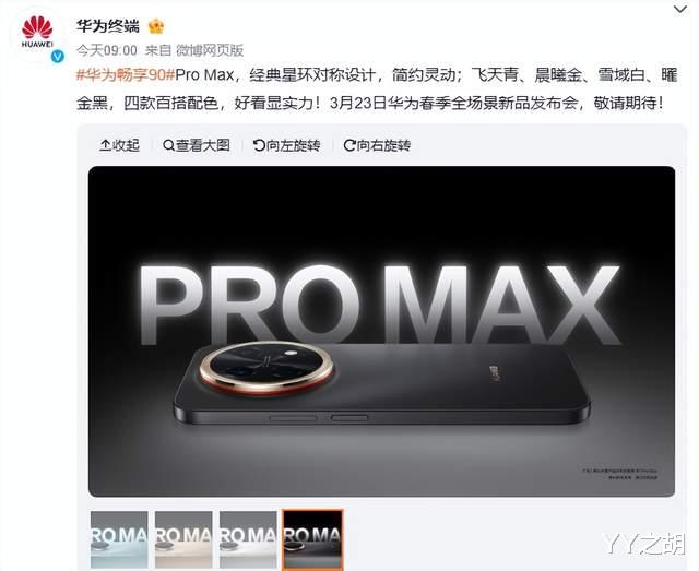 近日,根据多家科技媒体的消息,华为这家智能手机厂商正式宣布,将于2026年3月23日开启全新畅享90系列手机的全款预售活动。此次推出的新机定位于低中端市场,包含华为畅享90 Plus和华为畅享90 Pro Max两大版本,其中Pro Max版本凭借更强的硬件配置成为系列旗舰机型。现在,伴随着发布时间的临近,这款智能手机的外观和配置信息得到了更加充分的曝光。