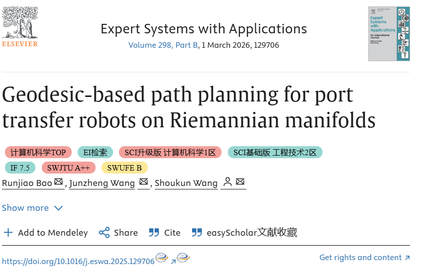 引文格式:Bao R, Wang J, Wang S. Geodesic-based path planning for port transfer robots on Riemannian manifolds[J]. Expert Systems With Applications, 2026, 298: 129706.
