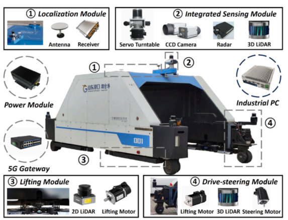 图9是现场环境和监控界面,图10是车的传感器配置:激光雷达、毫米波雷达、相机、RTK。