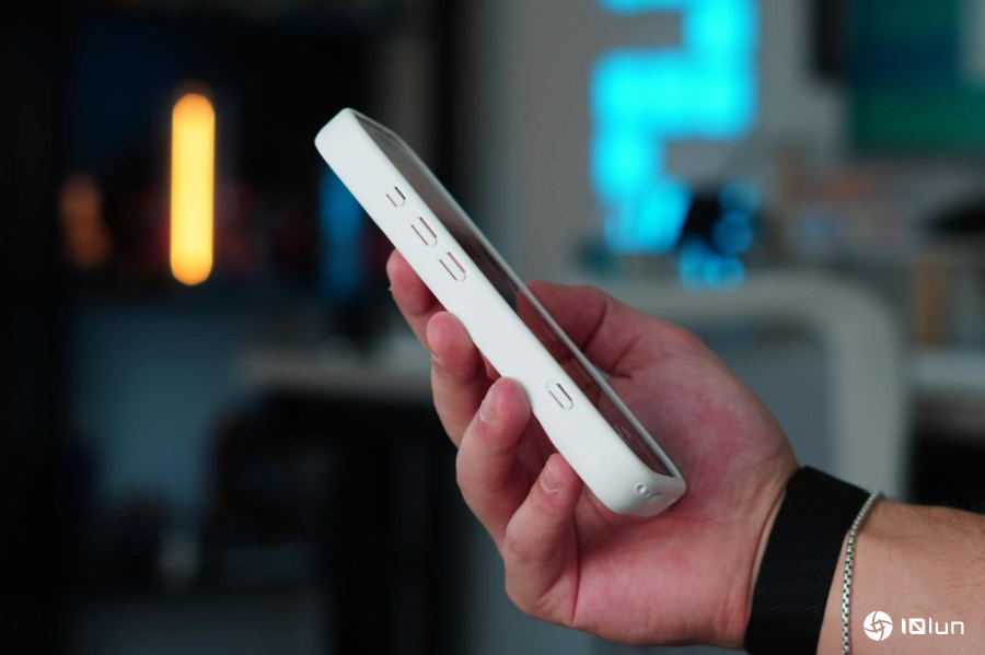 另一个锦上添花的设计是,虽然iPhone的USB‑C接口被手机壳占用了,但壳体本身新增了USB‑C端口,仍可为iPhone充电,支持最高45W PD功率。MagSafe磁铁也被保留,所有MagSafe配件仍可轻松使用。当然,如果装上MagSafe钱包等配件,会遮挡后屏,但这点还能接受。