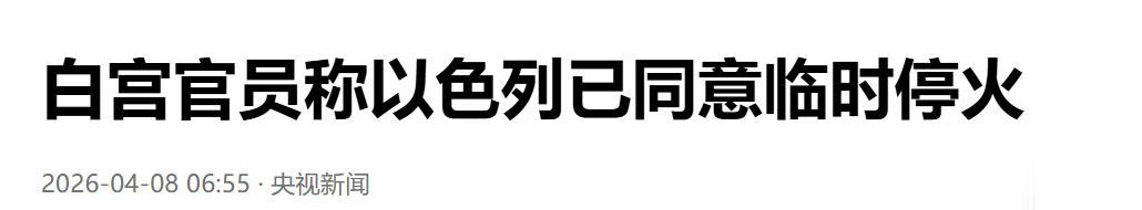 以色列官员私下对美国与伊朗达成的临时停火协议表示“担忧”。一位熟悉情况的以色列消息人士说,以色列会遵守停火协议,但“并非出于自愿”,而且以色列的名单上还有更多目标没打。这话翻译过来就是:我虽然答应停了,但我不高兴,我还有账没算完。