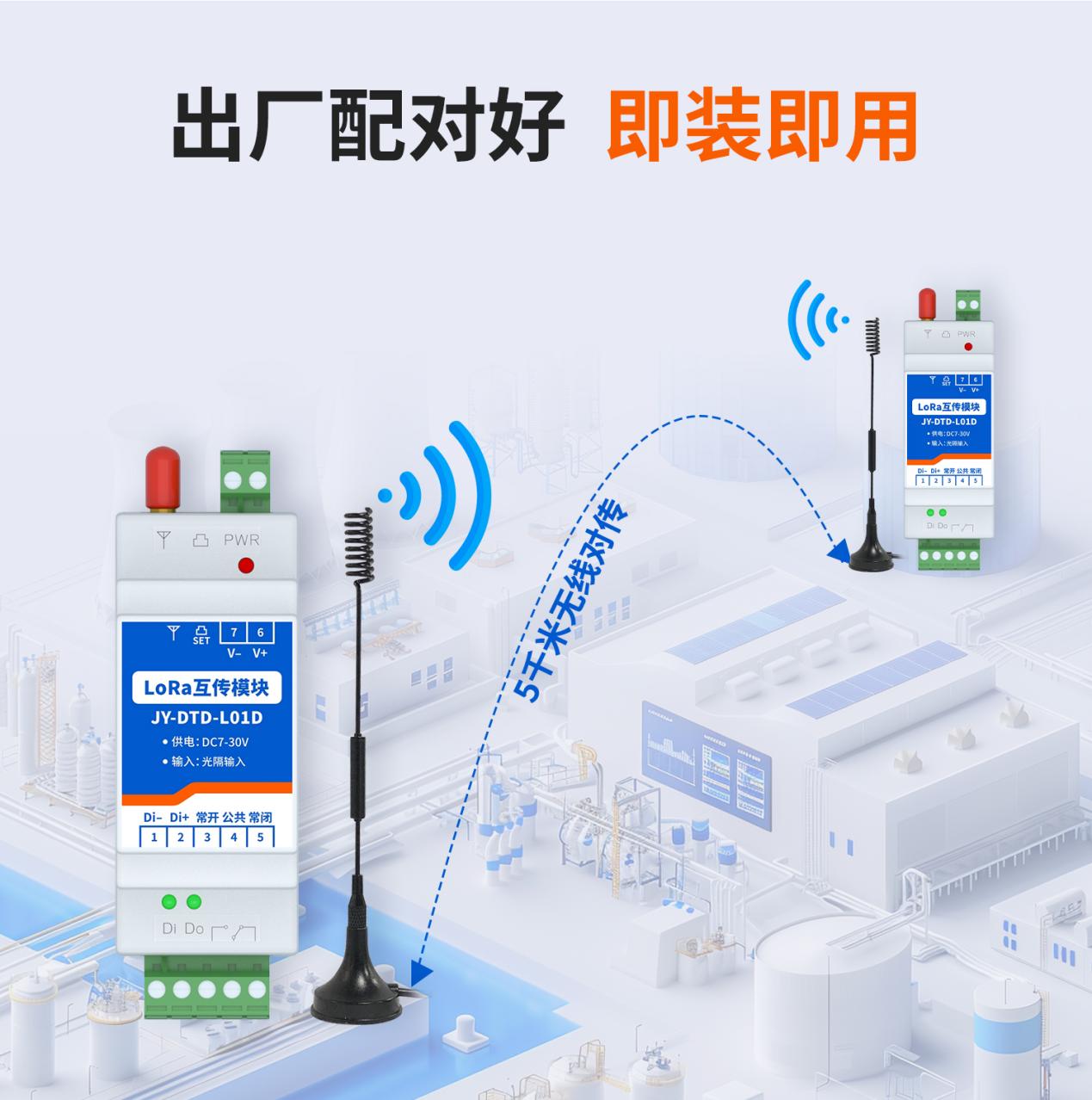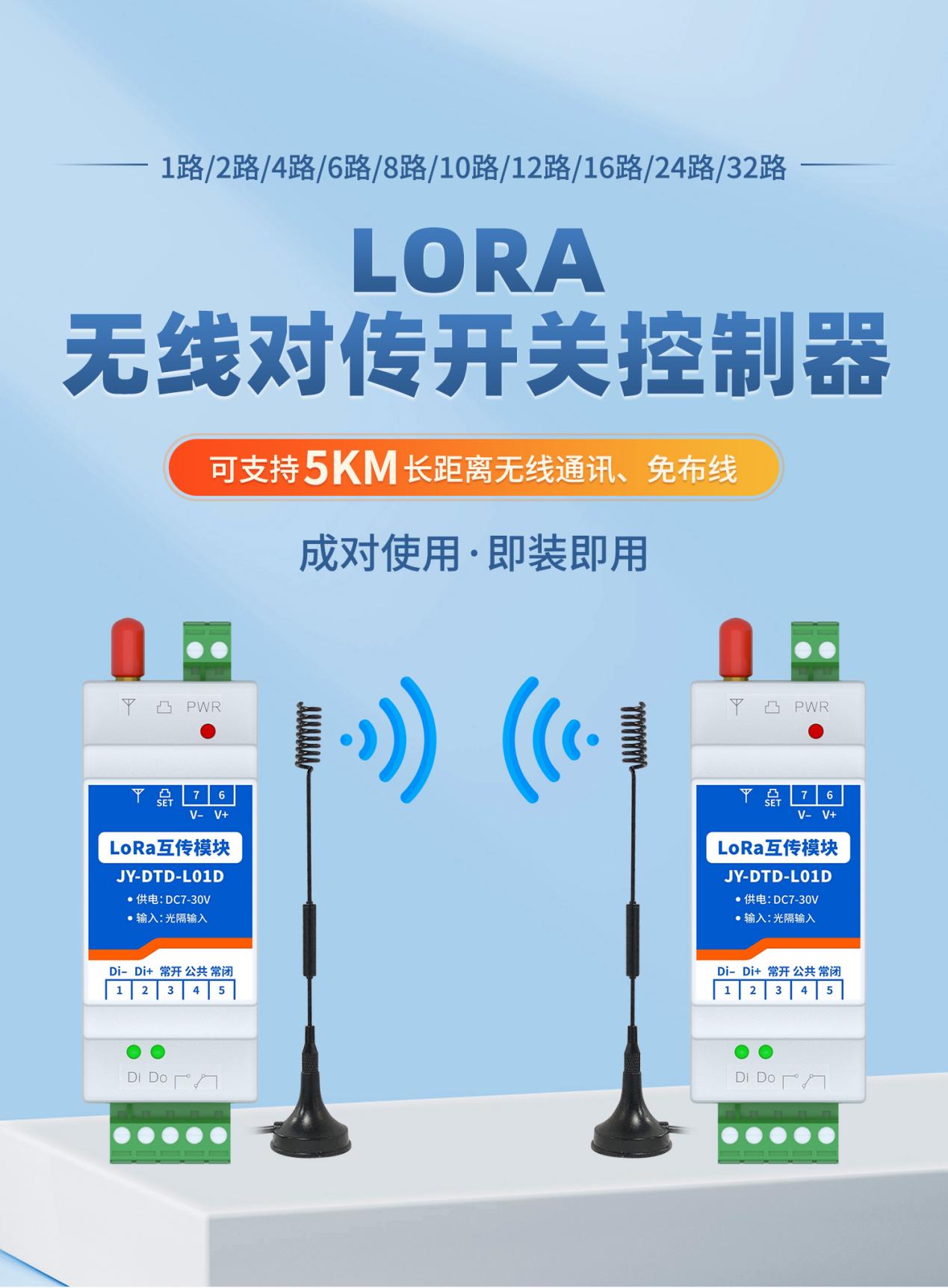 LoRa 开关量对传模块(无线DI/DO透传)核心优势:远距离(3–10km)、穿墙强、低功耗、免布线、双向开关量同步,非常适合无法布线、距离远、点位分散、只需要通断/报警/联动的远程控制场景。