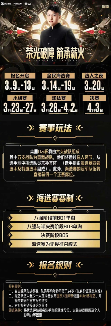 Uzi自掏100万办比赛,冠军独拿66万! 海选今天收官,正赛3月23日开打。老哥们,这波情怀你冲不冲?