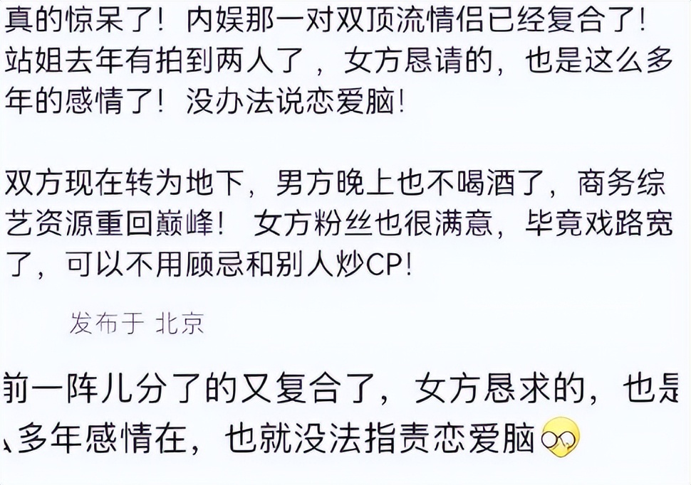 双顶流“复合”说完婚变瓜咱再来说说近期网上传的沸沸扬扬的顶流复合瓜。