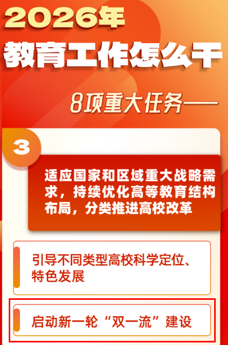2026年全国教育工作会议上,教育部明确将分类推进高校改革列为重大战略任务,正式启动新一轮“双一流”建设,一边全面推进地方普通高校高质量发展,一边推动应用型高校主动对接区域重大战略。