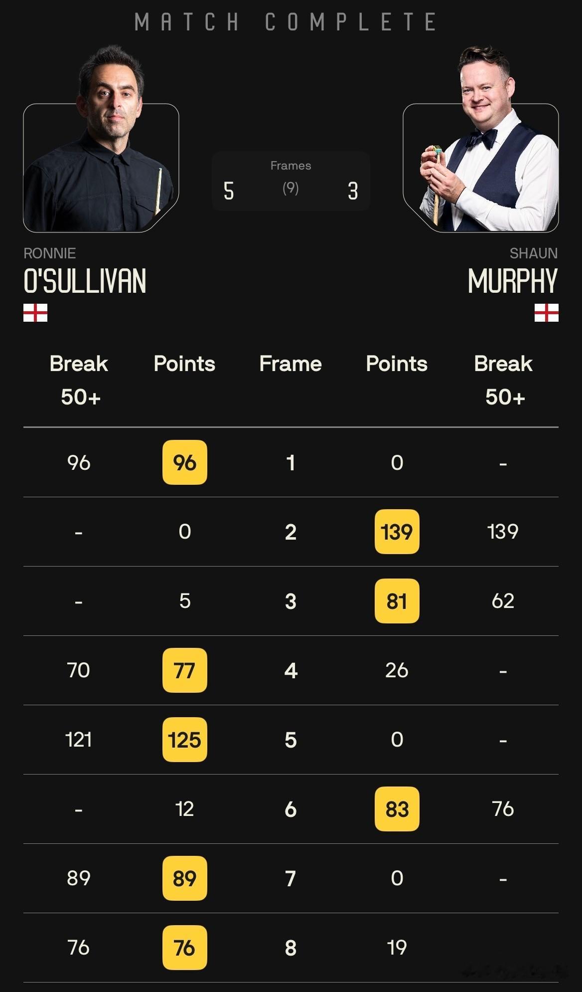 总的来说,今天这场比赛就像是与一台精密仪器过招,你哪怕有一个零件松动,他就能拆掉你整台机器,输给这样的奥沙利文,我无话可说。