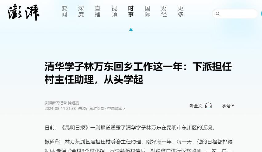 2023年,林万东顺利从清华毕业,摆在他面前的是一线城市的优质工作机会,凭着清华的名校光环,他本可以留在大城市,拥有体面的工作和安稳的生活。