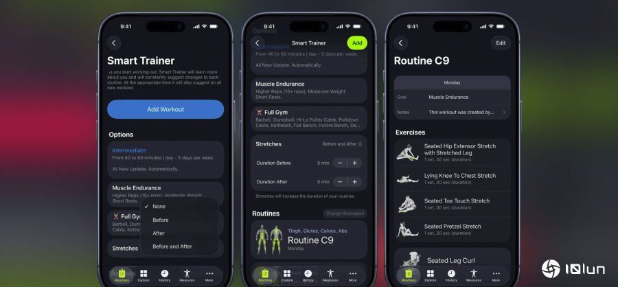 在本次更新中,应用的AI驱动Smart Trainer将开始提供热身和放松拉伸建议,“自动针对您训练计划所针对的具体肌肉进行量身定制”。