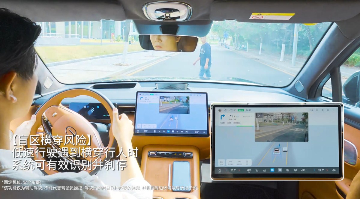 此次OTA升级核心在于智行安全辅助的升级,针对盲区风险提前预判并快速做出决策。在视野受限的乡村窄路或交通密集的早高峰路段,当摩托车等目标从盲区突然冲出时,凭借新增的FCTB前向横穿制动辅助,车辆可提前识别潜在风险并刹停,将碰撞风险化解于无形。