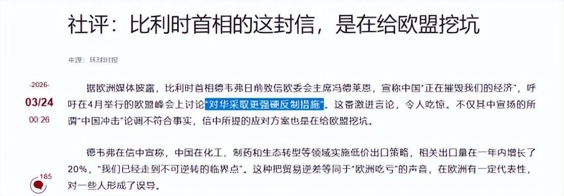 比利时首相鼓动欧盟对华强硬——2026-03-24 09:29——北京日报