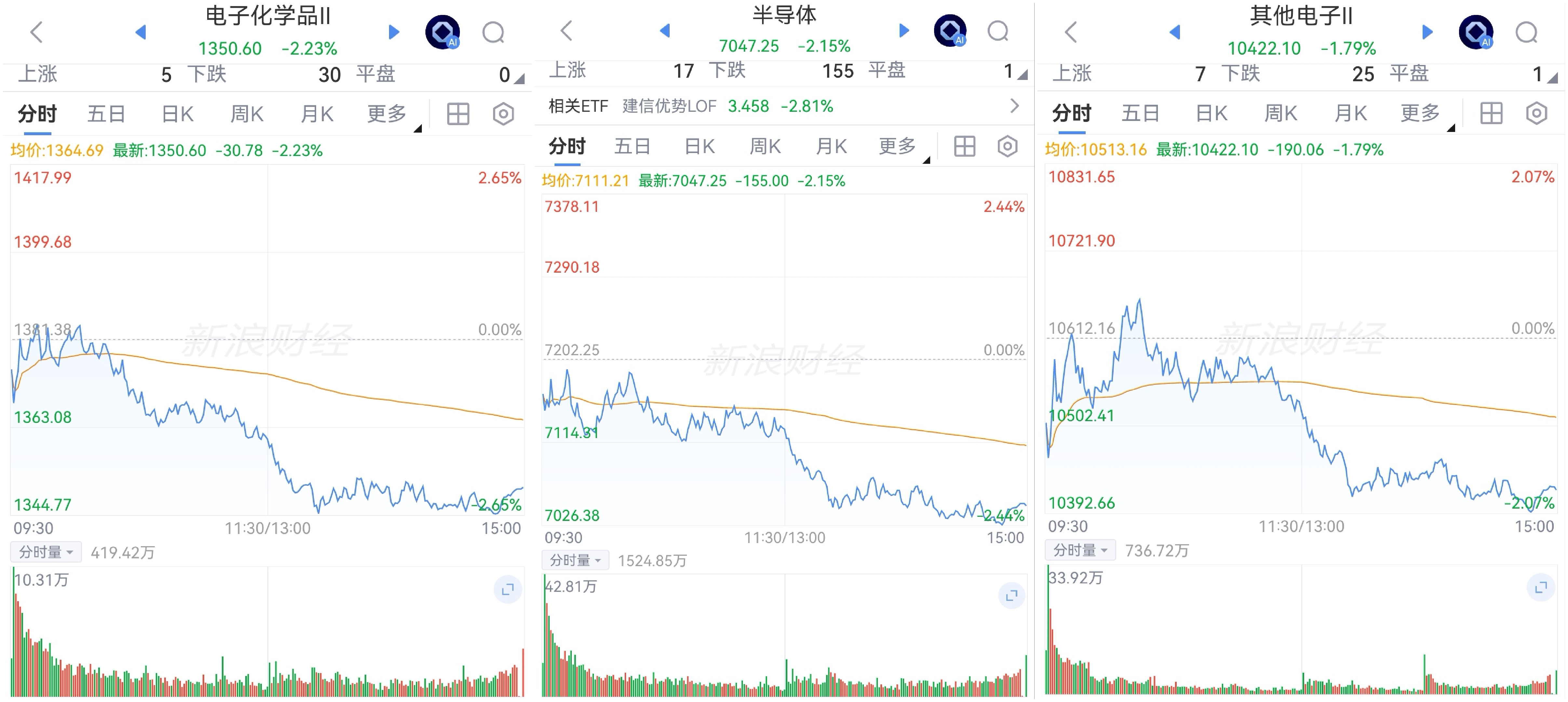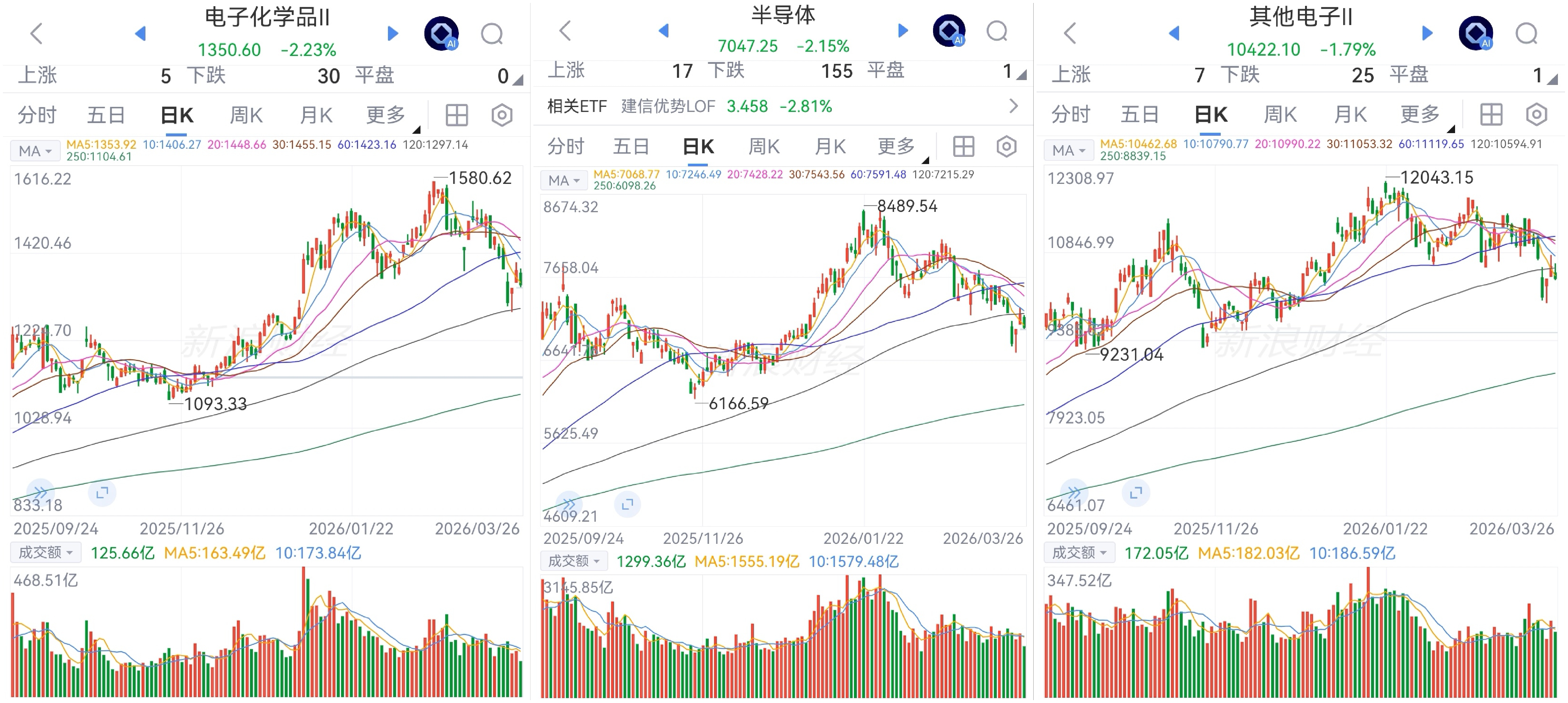 半导体板块震荡调整。板块全部净卖出,其它电子连续6天、化学品已连续11天。板块120日均线附近、化学品接近120日均线。